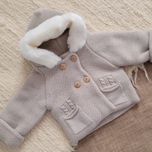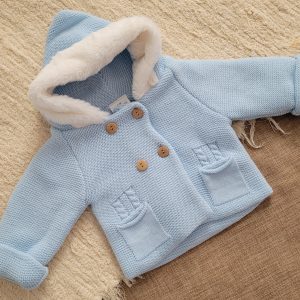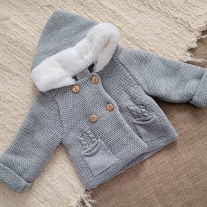 Sólo contiene pelo en el borde de la capucha, es resto es todo de lana doble, super calentito.