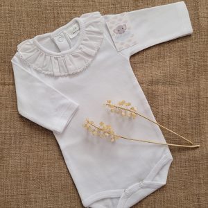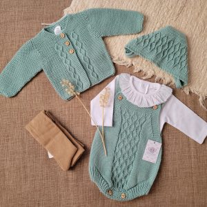 Algodón 100% de buenísima calidad, con todo el interior de felpa para que nuestro bebé esté de lo más cómodo y calentitPrimera puesta escoger la talla 0.