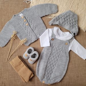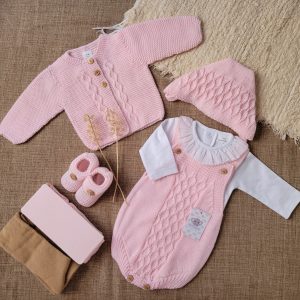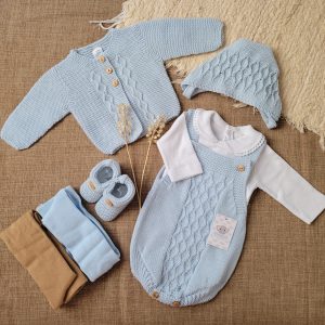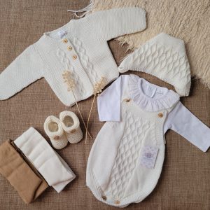 Añade a la cesta el body con cuello bebe o cuello volante, leotardos y patucos para tener el conjunto completo listo para tu bebé.