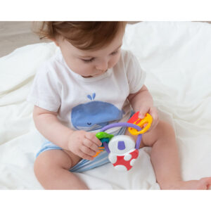 Llavero musical, mordedor, sonajero, ideal para entretener a nuestros pequeños terremotos.
