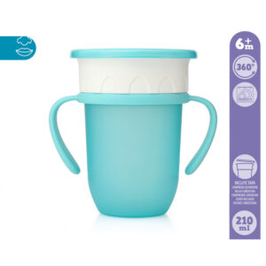 Estas tazas son la mejor ayuda para que tu bebé aprenda a beber de forma independiente. Su membrana en silicona permite al niño beber de cualquier punto del borde, como haría en una taza o vaso de adulto, sin necesidad de tetina, boquilla o pajita evitando derrames.